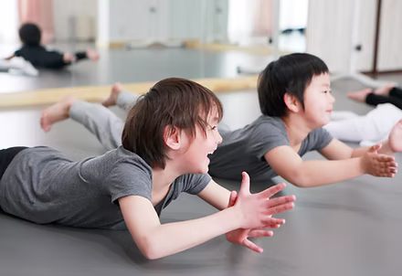 ストレッチをして柔軟な身体を作り音楽に合わせて身体を動かす楽しさを学び、バレエを通して姿勢を良くする。