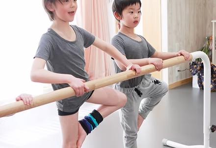 小学校低学年クラスと、高学年クラスを用意しています。バーレッスンではバレエの基礎である軸をしっかりと身に付け、センターレッスンでは表現することを大切に、踊る楽しさを感じてレッスンしていきます。